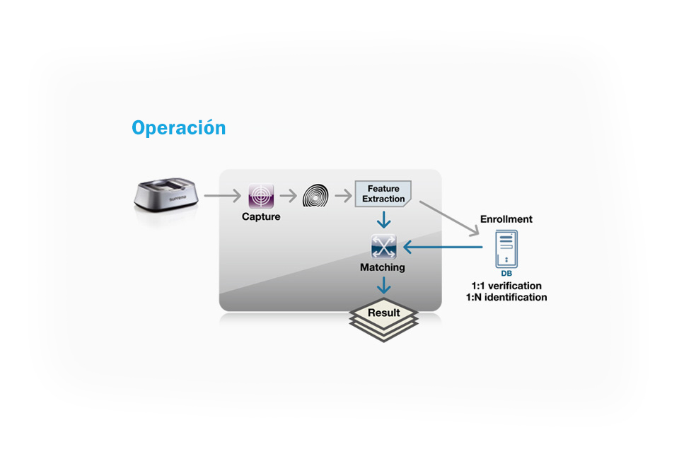 El SDK BioMini de Suprema es adecuado para aplicaciones en donde el enrolamiento y autentificación de huella puede ser realizado en móviles, PCs y sistemas basados en red, y con escáners de autenticación de Suprema. Soporta un completo rango de funcionalidades incluyendo captura de imagen, extracción de plantillas, comparación e identificación de plantillas (comparación 1:N). Ayudará a los usuarios a desarrollar sus propias aplicaciones basadas en sistemas operativos Windows, Linux y Android.